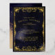 Belle carte de tarot holistique et spirituelle style nuptiale d'invitation de douche. Le design comprend notre propre conception holistique de carte de soleil et de tarot de lune dessinée à la main en feuille d'or. Le design est réalisé avec des détails complexes et décoratifs. L'arrière - plan présente un design bleu marine et or audacieux avec des faux étoiles dorées tortueuses. Customisez avec votre monogramme, le nom de la mariée, les détails de l'événement et l'heure. L'envers comporte un arrière - plan d'encre bleu marine audacieux aux accents faux or ainsi qu'un élément de design de lune d'or.
