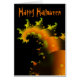 Une tente fractale orange éffrayante avec "Happy Halloween" sur un arrière - plan noir. L'intérieur est également noir avec une répétition de la tentacule.
