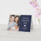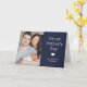 Cette simple carte de Fête des pères Happy bleu et blanc présente un arrière - plan bleu marine foncé avec une typographie de texte de machine à écrire vintage blanche qui dit "Bonne Fête des pères". Ajoutez deux photos de papa et de la famille, avec la place pour personnaliser avec vos noms et votre année.