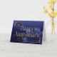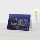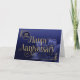 Il s'agit d'une carte du 20e anniversaire de l'employé avec le texte 'Joyeux anniversaire' écrit dans une police élégante avec des swashes fluides. Le texte et les détails de la conception ont un effet de feuille d'or attrayant superposé. L'arrière - plan se compose d'un dégradé bleu moyen à bleu foncé, avec une fleur de lys accrocheuse, dans les tons bleu assortis, dans le coin inférieur droit. Le nombre d'années est en haut à gauche. REMARQUE : L'effet de feuille d'or est numériquement simulé dans l'illustration, aucune feuille d'or réelle ne sera utilisée dans la fabrication de ce produit. Conception par NATALIE KINNEAR