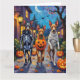 Adorable Thai Ridgebacks dressed in playful Halloween costumes carry pumpkin buckets while trick-or-treating under the moonlit sky. This festive design highlights the breed’s sleek coat, distinctive ridge, and confident personality, perfectly capturing the spooky yet fun atmosphere of Halloween night. A striking celebration for Thai Ridgeback lovers, dog enthusiasts, and Halloween fans alike.