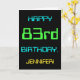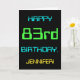 Ce design simple et amusant de carte de voeux d'anniversaire comporte un message comme "HAPPY 83rd BANTHDAY, JENNIFER!". Il présente également un look amusant inspiré de l'informatique numérique. Le nom à l'avant et le message à l'intérieur peuvent être personnalisés. Il pourrait être envoyé ou donné à quelqu'un qui célèbre son quatre-vingt-troisième anniversaire et qui peut-être travaille (ou a travaillé avant la retraite) comme administrateur de système informatique, programmeur informatique, administrateur réseau, ingénieur électrique, développeur logiciel, ou qui aime utiliser des ordinateurs. [~Z0000100]