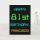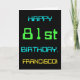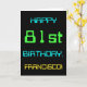 Ce design simple et amusant de carte de voeux d'anniversaire comporte un message comme "HAPPY 81st BANTHDAY, FRANCISCO!". Il présente également un look amusant inspiré de l'informatique numérique. Le nom à l'avant et le message à l'intérieur peuvent être personnalisés. Il pourrait être envoyé ou donné à quelqu'un qui célèbre son quatre-vingt-premier anniversaire et qui peut-être travaille (ou a travaillé avant la retraite) comme programmeur informatique, développeur logiciel, administrateur de base de données, administrateur réseau, ingénieur électronique, ou qui aime autrement utiliser des ordinateurs. [~Z0000100]