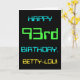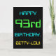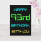 Cette carte de voeux d'anniversaire simple et amusante comporte un message comme "HAPPY 93rd BANTHDAY, BETTY-LOU!". Il présente également une apparence amusante inspirée de l'informatique numérique. Le nom à l'avant et le message à l'intérieur peuvent être customisés. Elle pourrait être envoyée ou donnée à quelqu'un qui fête son quatre-vingt-treizième anniversaire et qui peut-être travaille (ou a travaillé avant la retraite) comme administrateur de base de données, programmeur informatique, administrateur réseau, développeur de logiciels, ingénieur électrique, ou qui aime autrement utiliser des ordinateurs. [~Z0000100]