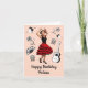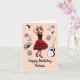 Cette adorable figurine de danseuse exécute une danse flamenco dans sa robe rouge et noire à pois et volants. Elle est entourée de motifs espagnols esquissés à la main sur un fond pêche. Le message d'exemple incluant l'occasion et le nom peut être personnalisé facilement via la zone de texte. N'oubliez pas d'ajouter votre message personnel à l'intérieur aussi !