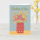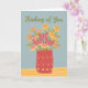 This card is the perfect way to show someone you are thinking of them. Whether they are having a tough time or you simply want someone to know you care. The illustration is of a bright bunch of flowers in a patterned vase.