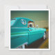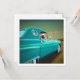 Thunderbird - Voiture classique Retro turquoise à capuchon bleu avec astronaute donnant un "pouce vers le haut" et petit robot mignon regardant par la fenêtre du cercle arrière. Cette illustration de Cindy Thornton Art était à l'origine un acrylique sur toile. La course à l'espace est en marche !