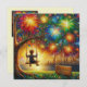 Un jeune garçon sur une balançoire d'arbre regarde un spectacle de feux d'artifice et célèbre l'anniversaire de Toby. Les salutations sur la carte sont "Joyeux Anniversaire Toby". Sur le dos de la carte se trouve une petite version de l'image avant, et beaucoup de place pour écrire un message. Fabriqué avec l'aide d'AI Bing.