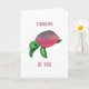 Cette carte pour penser à vous présente une peinture à l'aquarelle d'une mignonne tortue de mer avec une carapace violette. Voir notre magasin pour plus de cartes de vœux d'animaux océaniques