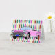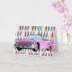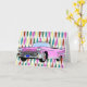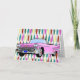 Conception d'arrière - plan d'années '50 dans rose, jaune citron, la turquoise, et un rouge-foncé. Cadillac convertible rose avec des ailerons dans le premier plan. Customisez cette carte et employez-la pour celui que vous vouliez….anniversaire, retraite, anniversaire, ou une invitation.