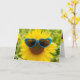 Tournesol jaune portant des lunettes de soleil en forme de coeur. Le texte peut être modifié.