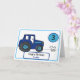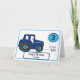 Carte de 3e anniversaire avec un tracteur bleu et un chien. Cette carte illustrée est parfaite pour un parent ou un grand-père à donner à un fils/petit-fils à trois ans. Cette carte indique, "Joyeux anniversaire" à l'extérieur et comprend de l'espace pour l'âge et le nom du garçon. Le message intérieur peut également être personnalisé.