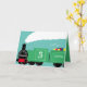 Une carte de train personnalisée à 5 ans. Le design montre un train vert plein de cadeaux. La locomotive a un texte personnalisé pour le nom du garçon, son âge et l'endroit où l'enfant vit. La carte idéale pour un parent passionné de chemin de fer à donner son fils ou pour un grand-parent à donner son petit-fils.