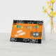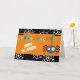 L'avant de cette carte de voeux d'Halloween pour les enfants présente une araignée à l'allure délirante pendant sur un arrière - plan orange vif. Votre texte personnalisé est en blanc sur un côté. Une bannière colorée qui dit "Trick or Treat" est portée par deux chauves-souris noires. Une bordure en toile d'araignée noire et blanche ajoute un intérêt éffrayant. L'intérieur de la carte a une autre araignée suspendue à son web, et a de l'espace pour votre propre message. Mignonne, surtout pour les enfants ! *L'image clipart utilisée dans cette conception est protégée par le droit d'auteur de Encore Software, Inc., qui permet son utilisation à ses concédants de licence. Tous droits réservés.