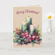 Cette belle carte présente une photo de trois bougies éclairées, des poinsettias, de la verdure et des baies avec un accueil modifiable au-dessus. A l'intérieur, il y a un message modifiable. Vous pouvez modifier les messages ou les supprimer pour créer une carte vide. Vous pouvez également modifier les couleurs arrière - plans à l'intérieur et à l'arrière ainsi que la bande derrière le message à l'avant de la carte. Profitez de votre nouvelle carte de Noël éditable à trois bougies !