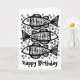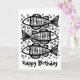 Une carte d'anniversaire avec un motif de trois poissons dessiné à la main. "Joyeux anniversaire" à l'avant et à l'intérieur. Si vous ajoutez votre propre message de salutation, n'oubliez pas de modifier les deux salutations.