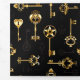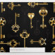 Seamless pattern of antique, gold and silhouette keys on black background.