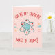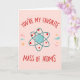 Célébrez le lien unique et fondamental que vous partagez avec la carte « Vous êtes ma masse d'atomes préférée ». Le devant présente un design d'atome ludique et créatif, symbolisant la forte connexion qui vous lie ensemble de la plus belle façon.