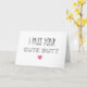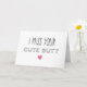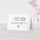 Cette carte élégante et humoristique comporte un texte qui dit « I Miss Your Cute Butt » avec un cœur rose en dessous. Êtes-vous dans une relation à distance ? Si c'est le cas, c'est la carte parfaite à envoyer à votre moitié ! Cela le ou la fera sourire et rire en même temps ! Il s'agit d'un design moderne, actuel et unique qui n'est pas couramment vu ici sur Zazzle. Cette carte est disponible en trois tailles différentes : une grande carte de vœux mesurant 21,5 x 28 cm, une carte de taille standard mesurant 13 x 18 cm et une carte de correspondance plus petite mesurant 10 x 14 cm. Le design sera superbe sur n'importe laquelle de ces tailles ! L'intérieur de cette carte est vierge pour que vous puissiez écrire votre propre message. Si vous souhaitez un message dactylographié, cliquez sur le bouton « Personnaliser » à droite de votre écran et vous