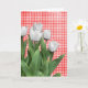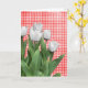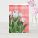 Bouquet blanc tulipe sur rouge et blanc en vichy arrière - plan pour anniversaire général.