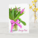 Tulips rose vif dans le vase avec pois de polka arc pour maman.