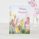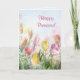 Beau thème en pastel comportant les tulipes de ressort et le texte heureux de pâque dans le rose, l'aqua et le jaune. Texte intérieur de personnaliser. Enveloppe et affranchissement assortis disponibles.