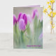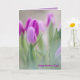 L'avant de cette carte élégante a un gros plan de tulipes violettes avec un arrière - plan flou et les mots Joyeux Fête des Mères, et l'intérieur a une merveilleuse citation d'une personne inconnue pour montrer votre amour et votre appréciation à maman : Au monde vous êtes une Mère, mais à votre famille vous êtes le Monde.