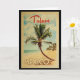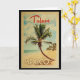 Un imprimé d'art moderne Tulum Mexico, d'un style unique et rétro, dans un style d'affiche de voyage vintage. Il dispose d'un palmier incurvé sur une plage de sable avec l'océan sous un ciel bleu nuageux.
