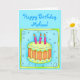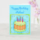 La joyeuse carte d'anniversaire comporte un gâteau d'anniversaire orange et vert avec des bougies roses sur un arrière - plan turquoise avec une bordure vert éclair sur une carte turquoise. Super aussi pour un 3ème (troisième) anniversaire. Entièrement personnalisable pour personnalisation et message. Célébrez un anniversaire ou une autre occasion avec l'art original cake et cupcake qui est parfait pour les garçons et les filles ainsi que pour les adultes. Les couleurs sont à la fois plus douces et plus vives.