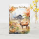 Two deer in mountain landscape with trees and flowers. Suitable for a birthday for anyone