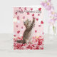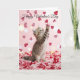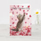 Carte Un adorable chaton attrape des pétales de fleurs e