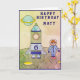 L'astronaute sur la Lune dans l'espace Carte d'anniversaire joyeux. Carte de voeux d'anniversaire de l'espace. Cette carte a un astronaute et son vaisseau-fusée sur la Lune. Le garçon est en costume astronaute bleu et sa fusée a un numéro d'âge. Personnalisez avec le numéro d'âge sur le navire-fusée et le nom. L'astronaute garçon fait de ce grand comme une carte d'anniversaire pour l'anniversaire d'un garçon.