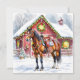 Carte Un Cheval Brown Festif et une grange d'hiver Noël