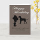 Cette drôle de carte de voeux d'anniversaire a été conçue avec une femme qui a récemment été dans un divorce ou une pause, en tête. L'extérieur présente des dessins silhouettes d'un homme et d'un chien par lesquels l'expéditeur promet à la fille d'anniversaire ou à la femme un "chien" si le destinataire maintenant unique est gentil. L'intérieur identifie étonnamment le "chien" comme un homme, avec lequel le destinataire pourrait associer son ex-mari, ou son ex-petit ami. L'expression humoristique sur la carte capitalise sur la tendance familière des femmes à désigner les hommes infidèles, womaniseurs, ou tout simplement désordonnés dans les relations amoureuses comme des "chiens".