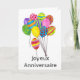 Carte d'anniversaire française Ballons colorés. Cette carte ballons colorée est un tableau original dessiné à la main. Cette carte est également disponible dans d'autres langues non anglaises