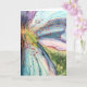 Vue macro rapprochée de l'intérieur d'une fleur tropicale. Le design abstrait dans les couleurs vibrantes présente des lignes dynamiques émanant d'un point central, avec de petites anthères orange qui attirent l'attention des abeilles. Variations de bleu, violet et rose, se mélangent pour créer des pétales bleus et un arrière - plan vert. Les formes fluides et organiques créent un sens du mouvement et de l'énergie, mélangeant de multiples teintes de bleu, vert, violet et jaune. Les cartes de voeux sont un excellent moyen d'express des sentiments personnels.