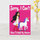 Designed with a stylish woman leading a unicorn on a leash, this St. Patrick’s Day card sets the scene on a hot pink background that makes the figures stand out right away. They move from left to right as if strolling together, and the woman’s steady stride lines up with the unicorn’s calm smile for a friendly, in-on-the-joke connection 💚. She wears a bright white sundress with soft ruffles, paired with red knee-high heeled boots, while her long black hair streams behind her. The unicorn adds fantasy flair with a purple mane and tail, a golden horn, and blue hooves, giving the pair a sweet, companionable look ☘️. White text sits at the top and bottom in a flowing, cursive style, framing the illustration like a cheeky caption. The lighting stays even and bright, keeping the cartoon shapes crisp and flat against the pink field. The purple hair, golden horn, and blue hooves pop clearly against the hot pink backdrop, with the white lettering hovering above and below the duo.