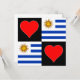 Cartes de voeux pour le peuple uruguayen fier et carré Uruguay. Avec un motif à damiers unique fait de coeurs rouges et le drapeau national uruguayen. Travaille comme une invitation pour les fêtes patriotiques uruguayennes, tendre la main à des amis et à la famille en Uruguay, ou pour des projets d'artisanat et d'art patriotique !