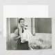 Homme faisant la vaisselle dans la cuisine, pipe dans les dents, (B&W) | George Marks | AssetID : 57539450
