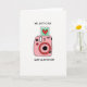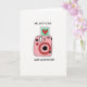 This Valentine's Day card shows a hand-drawn instant camera centered on a plain white background. The camera is bubblegum pink with thick black outlines, a red ring around the lens, and a few simple button details. From the top, an instant photo is coming out with a big ruby-red heart in the middle on a mint-green background, making the message feel clear and sweet ❤️. Above the camera, the text “WE JUST CLICK” appears in black hand-lettered script near the top of the card. Below the camera, “HAPPY VALENTINE’S DAY” is written in black block letters along the bottom. The overall look is light and affectionate, like a small reminder of shared moments and inside jokes 💌🍫.