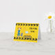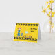 Carte de remerciement d'excavatrice de construction personnalisée cool pour un enfant qui aime les véhicules de construction jaunes en noir et jaune. Conception de véhicule amusant pour un petit garçon qui aime les voitures et les camions. Personnalisez avec le nom de votre enfant sous le ruban de signalisation noir et jaune.