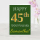 Carte Vert, Faux Or 45e Anniversaire De Mariage + Nom