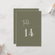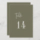 Carte Vert olive chic moderne 5x7" Numéros de tableau