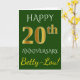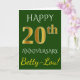Carte Vert, Or Faux 20e Anniversaire de Mariage + Nom