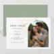 Ce mariage minimaliste moderne sauve la date des cartes plates comprennent une photo de couple d'arcs boho, une imitation délicate d'éléments floraux or et un ensemble contemporain de polices en noir jet. Le détail de la fleur est répété à l'arrière contre un arrière - plan vert sage. Le design est contemporain et chic. Parfait pour le couple élégant et élégant.