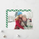 Fully customizable holiday card, featuring a hunter green and white chevron pattern and room for a photo.