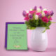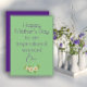 Carte de vœux pour la fête des mères. Le recto est violet et le verso est vert salade. Vous pouvez personnaliser les salutations et les vœux comme vous le souhaitez. Le design de la carte est complété par de délicates fleurs aquarelles.