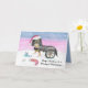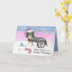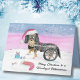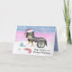 Cette belle carte de Noël peinte à la main comprend un Cavalier Roi Charles Spaniel noir et bronzé en fauteuil roulant, portant des cloches de jingle et un chapeau de Père Noël. Dans un champ d'hiver enneigé, la scène festive comprend un cadeau de Noël, des ornements, un bas et un os de chien placé à proximité. Réfléchi comme une carte de Noël pour un vétérinaire, ce design chaleureux honore les soins et la compassion fournis par les vétérans, tout en célébrant la joie et l'esprit de la saison des fêtes.