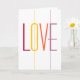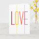 Carte de mariage colorée moderne avec grand script de typographie LOVE audacieux en rouge foncé bordeaux, jaune, corail orange et violet lilas sur le côté avant et la question et signature à l'intérieur et sur le côté arrière. ++++++++++++++++++++++++ Il suffit de personnaliser avec son nom, votre signature et la date !