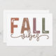 Cette conception automnale confortable et invitante présente la phrase « Fall Vibes » dans une combinaison de typographie audacieuse et élégante. Le mot « FALL » est affiché en grandes lettres carrées avec une texture en détresse, lui donnant une sensation rustique et vintage. Chaque lettre est remplie d'une couleur chaude et terreuse - des nuances d'orange atténué, de brun, de violet et de vert - qui capturent parfaitement l'essence de l'automne. Sous le mot « FALL », le mot « vibes » est écrit dans une écriture délicate et fluide, ajoutant une touche d'élégance et de charme au design. Le contraste entre les lettres carrées audacieuses et l'écriture douce crée une composition équilibrée et visuellement attrayante, rendant cette conception parfaite pour l'automne.